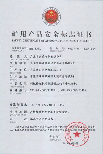 YBS系列礦用安全證書