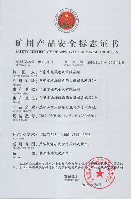 YBK2系列礦用安全證書