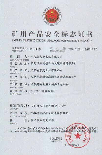 YBJ系列礦用安全證書