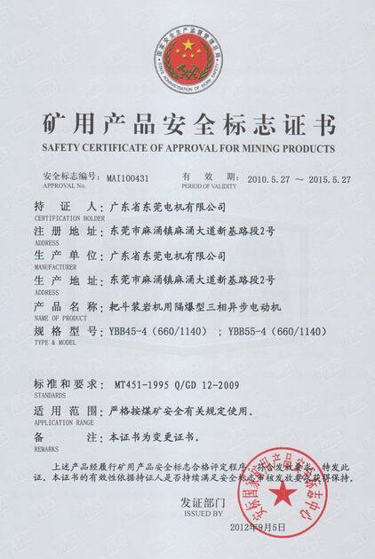 YBB系列礦用安全證書